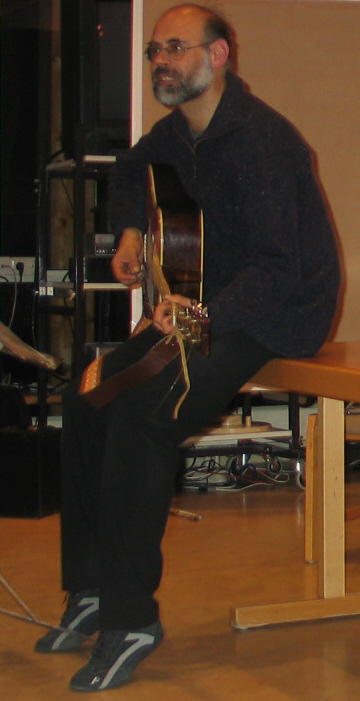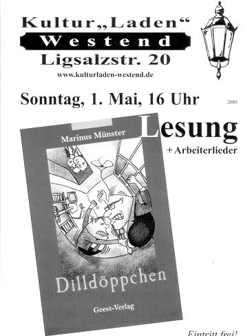 Lesungengab es bis Juli 2005 in Augsburg, Brannenburg, Kochel, München und Schweinfurt. Es folgen einige Veranstaltungsberichte: Auf Sendung mit Radio LORA MünchenIn der Sendung Literaturverhör des Münchner Radios LORA interviewte am 8. Juli 2005 die Schriftstellerin Kaouther Tabai („Das kleine Dienstmädchen“, Glaré-Verlag) Marinus Münster zu seinem Buch „Dilldöppchen“, das im Geest-Verlag erschienen ist. In der einstündigen Sendung las Münster eine Reihe von Passagen aus dem Roman vor. Es folgt eine gekürzte Fassung des Gesprächs. Tabai: Marinus, was heißt eigentlich „Dilldöppchen“? Münster: Das kommt aus dem Bergischen und heißt soviel wie Stehaufmännchen. Aber weil es so rumtanzt, wenn man es antippt, hat es auch etwas von einem einem Rumpelstilzchen. In der Geschichte spielen ziemlich viele Leute Rumpelstilzchen. Tabai: Magst du uns die Story zusammenfassen? Münster: Nach dem Platzen der IT-Blase will der Eigentümer der techno AG das Kapital aus der Firma herausziehen und die Leute auf die Straße setzen. Das könnte man ja noch verstehen, aber er ignoriert dabei alle Ansprüche der Angestellten auf Abfindungen und Überstundenguthaben. Da spielt der Betriebsrat nicht mit. Allen voran der Protagonist der Geschichte Markus Schlotterbek. Tabai: Wie reagiert da der Eigentümer? Münster: Er schickt Männer fürs Grobe in den Betrieb. Die setzen Markus Schlotterbek unter Druck, versetzen ihn, stellen ihn frei, kürzen sein Gehalt. Tabai: Und er sucht sich eine andere Stelle? Münster: Nein. Der Betriebsrat ist auch nicht ohne. Er vereitelt beispielsweise einen Versuch über eine Bilanzänderung Geld aus der Firma zu ziehen. Tabai: Das hört sich ja nach Wirtschaftkrimi an? Münster: Genau. Der Staatsanwalt kommt auch ins Spiel. Das Ganze spitzt dann zu und es ist bis zum Schluss nicht klar, wer gewinnt. Tabai: Wie hält der Markus Schlotterbek so einen Dauerkonflikt aus? Münster: Überhaupt nicht. Der spielt manchmal ganz schön Dilldöppchen. Tabai: Diese ganze Geschichte, hast du dir die ausgedacht, oder hast du da Vorlagen benutzt? Münster: Die beste Vorlage ist das wirkliche Leben. Das ist alles ganz authentisch. Ich habe selbst ein Vierteljahrhundert in der IT-Branche zugebracht. Natürlich sind alle Namen verändert … Tabai: … und diese Chris, die Frau vom Markus Schlotterbek … Münster: … ohne die das Buch viel zu trocken wäre. Da hat mir meine eigene Frau sehr geholfen. Die kommt selbst aus dem Bergischen und hat diese unverblümte Sprache. Als ich ihr eröffnete, dass ich den Roman schreiben will, kommentierte sie: „Nun ja, ein jeder macht das, was er nicht kann.“ Tabai: Das hab ich auch gelesen. Aber es scheint dich nicht abgehalten zu haben. Münster: Nein. Ich fand die Story einfach zu wichtig. Es passiert ja heute allenthalben. Und da hat sich mal ein Betriebsrat nicht ganz ohne Erfolg gewehrt. Da muss man doch verbreiten, wie der das denn geschafft hat. Tabai: Du sagst, dass du hauptberuflich Software-Entwickler bist. Du hast mir vorhin erzählt, dass deine Frau dagegen Computer hasst. Wie passt das zusammen? Münster: Gegensätze ziehen sich bekanntlich an. Bei Chris und Markus in dem Roman ist es so ähnlich. Dilldöppchen in München am 1. Mai 2005Strahlende Sonne am ersten Mai in München, der dazu noch auf einen Sonntag fiel, da standen die Chancen für die Lesung im kleinen Kulturladen Westend nicht besonders. Auch wegen der Konkurrenz der unzähligen anderen Kulturveranstaltungen in der bayerischen Hauptstadt. Dennoch: Marinus Münster las unterstützt von Klaus Eckardt (Gesang) und Annette Hübel (Klavier) aus seinem Roman Dilldöppchen vor einem Dutzend ZuhörerInnen. Diese Veranstaltung war etwas Besonderes. Nicht nur weil die Erzählung betrieblicher Auseinandersetzungen in einem New-Economy-Unternehmen mit historischen Arbeiterliedern umrahmt wurde. Sondern auch, weil eine Reihe der ZuhörerInnen den wahren Hintergrund der Geschichte kannten, ihn selbst miterlebt hatten und nun als Vorbilder der Romanfiguren mit ihrer Umsetzung in einer sehr subjektiven Erzählung konfrontiert wurden. Jedenfalls hat’s allen Beteiligten gefallen und sie beendeten die kleine Veranstaltung – wie es sich für einen solch schönen ersten Mai gehört – echt-münchnerisch im Biergarten. Marinus Münsters „Dilldöppchen“ in Kochel am See (22. März 2005)„Das war eine tolle Veranstaltung“, urteilten einhellig Heiko Tammena, pädagogischer Leiter der Georg-von-Vollmar-Akademie und das rund 25-köpfige Publikum. Marinus Münster las aus seinem New-Economy-Roman „Dilldöppchen“. Hans Gärtner sang und spielte dazu Lieder von Hannes Wader, Reinhard Mey und ihm selbst. Ein Großteil der ZuhörerInnen kamen von einem Mobbing-Seminar, das gegenwärtig an der Akademie abgehalten wird und waren daher besonders für das Thema des Romans empfänglich. In einer lebhaften Diskussion lobten sie den Realitätsbezug der Erzählung. Die positive Resonanz zeigte sich auch im Buchverkauf: Jede dritte TeilnehmerIn erwarb noch am selben Abend ein Exemplar. Das Bild zeigt Hans Gärtner mit Gitarre. |